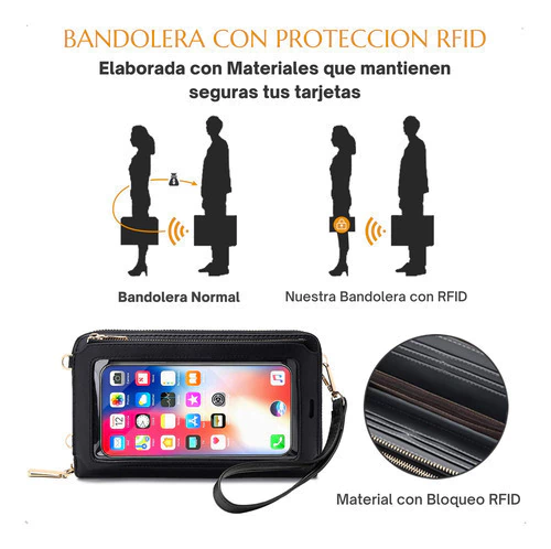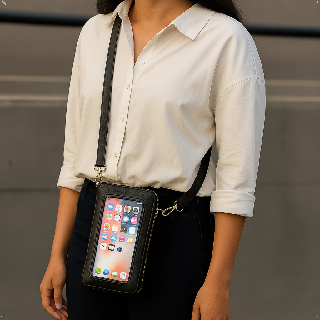 Diseñada para acompañarte con elegancia, seguridad y funcionalidad, esta bandolera convierte lo cotidiano en sofisticado. Con visor táctil transparente, doble correa intercambiable y bloqueo RFID, es tu mejor aliada para moverte segura y con estilo.