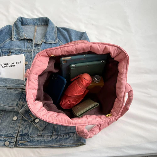 Esta cartera de gran capacidad con textura acolchada y correa única está diseñada para acompañarte a todos lados. Su formato amplio, estructura blanda y cierre magnético permiten llevar lo esencial — y también lo importante — sin resignar estilo. Perfecta para la oficina, la facultad, el colegio o jornadas completas que requieren comodidad y practicidad.