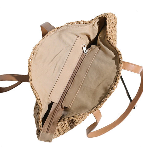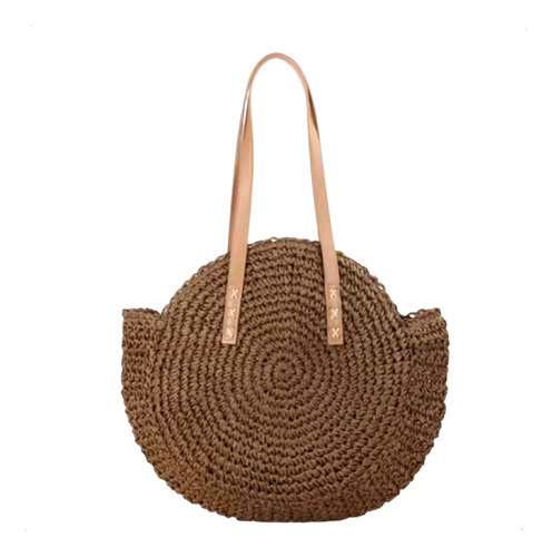 Cartera Circular XL de Papel de Arroz Elisabeth&Co Modelo Hawaii, Verano Playa, Beige o Marrón