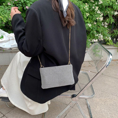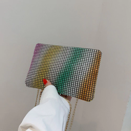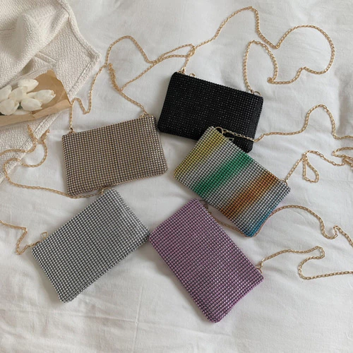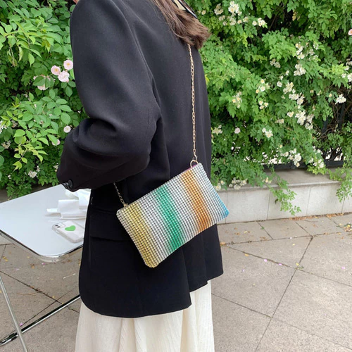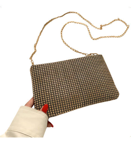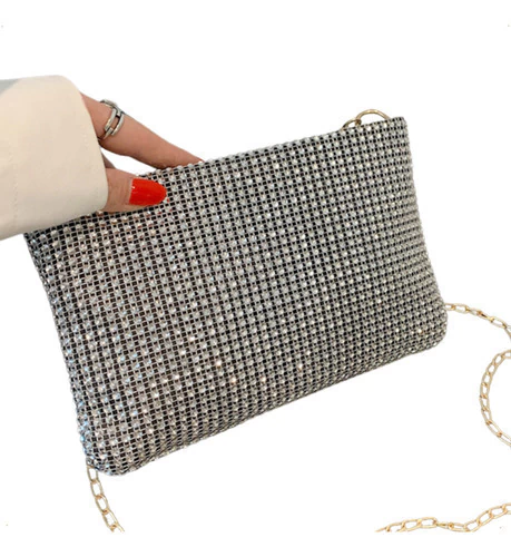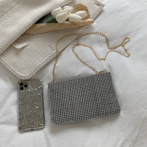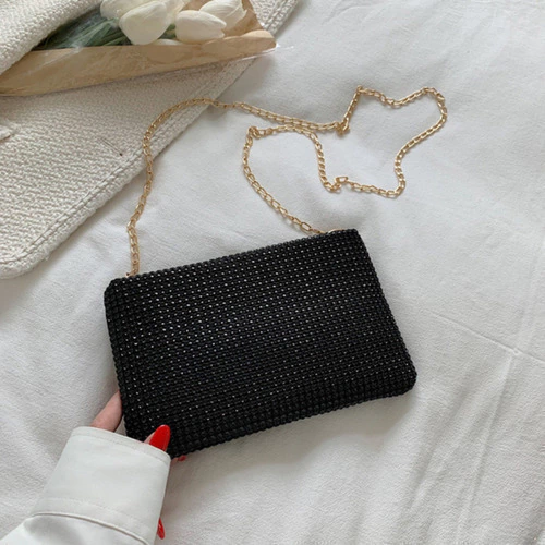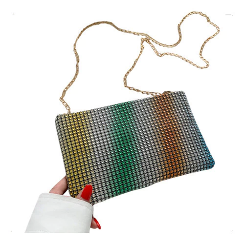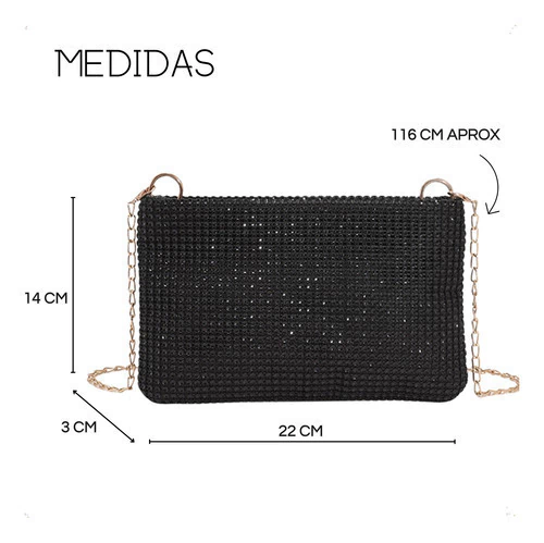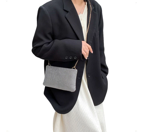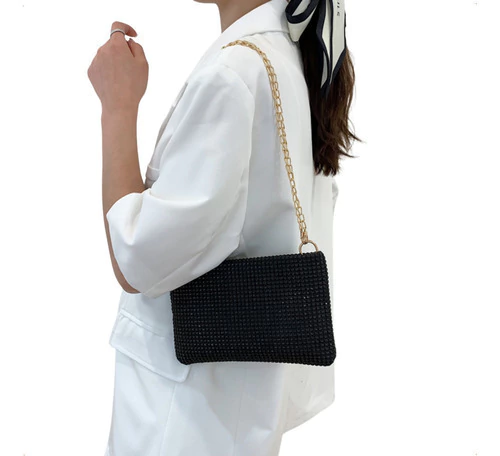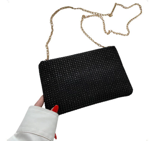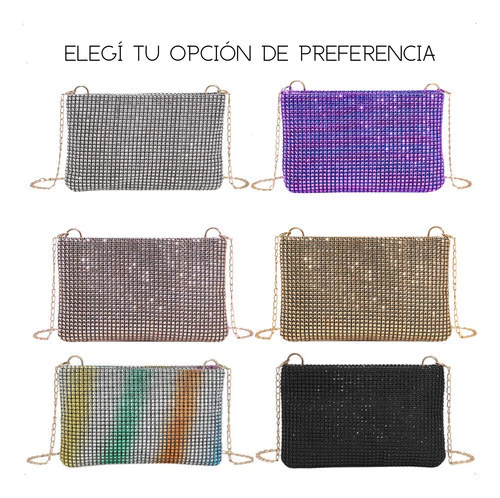 Cartera De Fiesta Mujer Elegante Con Strass Y Cadena Desmontable