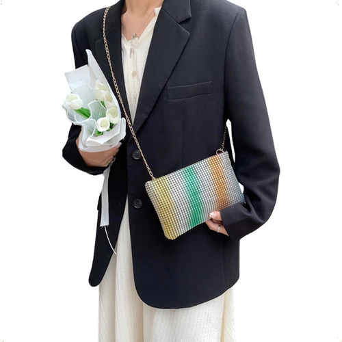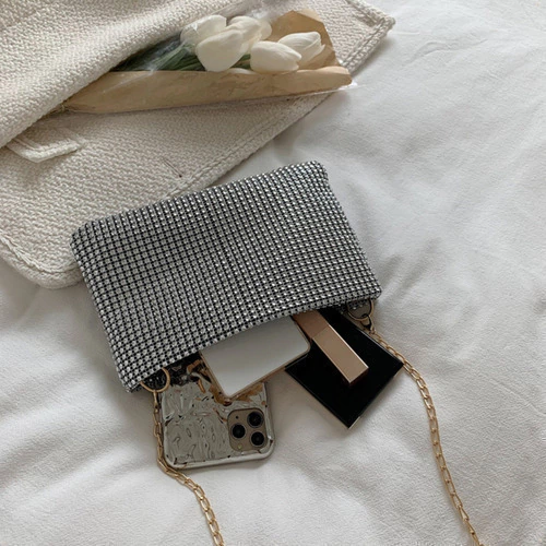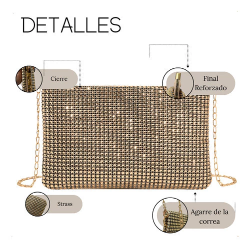 Esta cartera de fiesta fue diseñada para acompañarte en tus momentos más memorables. Elegante, funcional y con un toque de brillo que no pasa desapercibido.