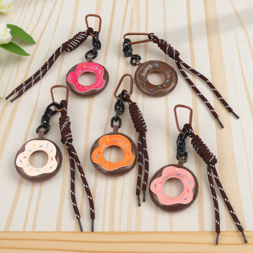 El charm colgante Dona de Elisabeth&Co es un accesorio original pensado para darle personalidad a tus carteras, bolsos y mochilas. Su diseño en forma de dona aporta un toque lúdico y sofisticado, convirtiéndose en ese gesto que eleva lo cotidiano.