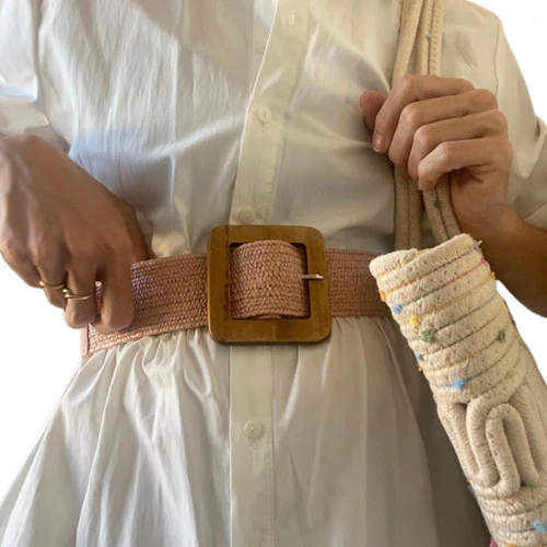 Sumá textura y diseño a tus looks con el cinturón Elisabeth&Co, confeccionado en rafia elastizada y terminado con una hebilla cuadrada de madera. Una pieza liviana, flexible y con estética natural, ideal para primavera y verano.