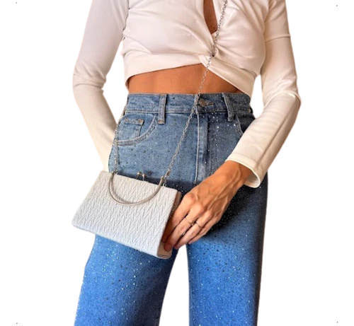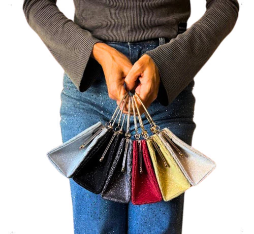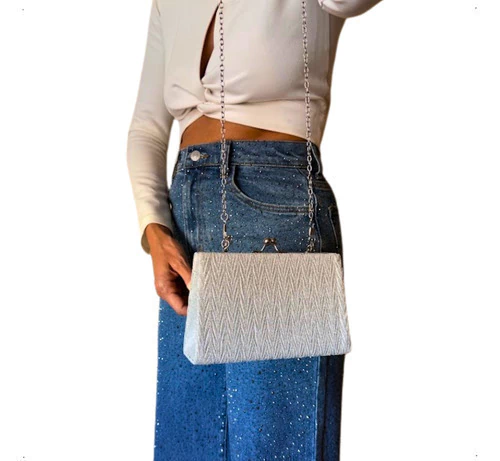 Disponible en tonos neutros y metalizados, combina estructura rígida con textura suave y detalles brillantes que lo hacen ideal para fiestas, bodas, salidas nocturnas o eventos formales. Su tamaño justo permite llevar lo esencial: celular, llaves, labial y actitud.