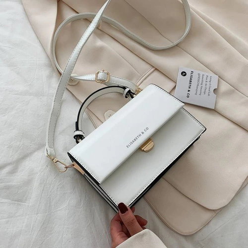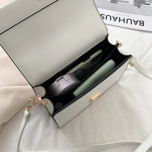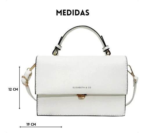 Diseñada en cuero PU blanco, con herrajes dorados y detalles que marcan la diferencia.