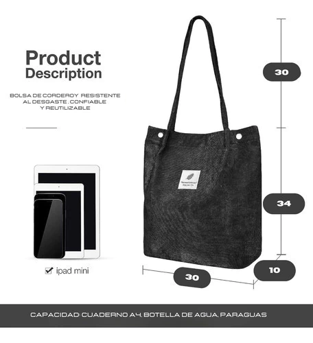 Cartera tote Elisabeth&Co · Diseño urbano en corderoy importado - Gran capacidad · Lleva celular, iPad, libros y esenciales diarios - Correas resistentes y cómodas · Altura ideal para uso cotidiano - Cierre imantado seguro · Interior forrado en tela suave - Textura liviana y agradable · Fácil de limpiar y mantener - Medidas: 34,5 cm alto · 38 cm ancho · 10,5 cm profundidad - Ideal para oficina, compras, viajes, playa o fin de semana